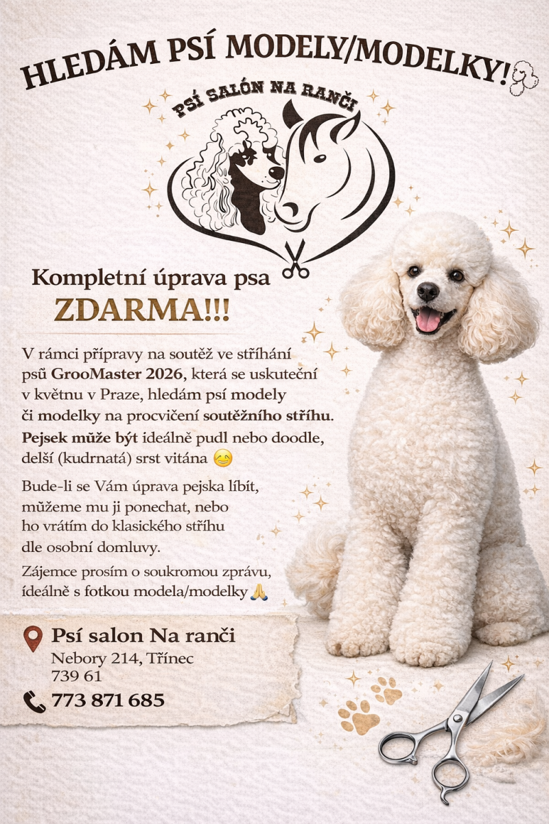 V rámci přípravy na soutěž ve stříhání psů GrooMaster 2026, která se uskuteční v květnu v Praze, hledám psí modelky či modelky na procvičení soutěžního střihu. Pejsek může být Ideálně pudl nebo doodle, delší (kudrnatá) srst vítána 🤗